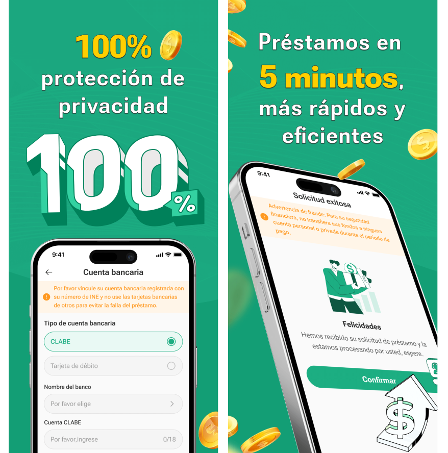 Descargue la aplicación y complete su solicitud en solo 5 minutos desde su teléfono. ¡Fácil y sin complicaciones!